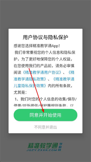 1、打開(kāi)精準(zhǔn)教學(xué)通,在彈窗中點(diǎn)擊同意并開(kāi)始使用按鈕。