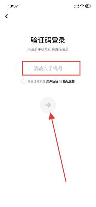 2、在登錄頁面,填寫手機號,點擊箭頭按鈕。