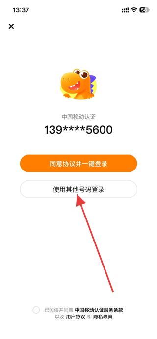 1、打開瓜瓜龍啟蒙,點擊使用其他號碼登錄。