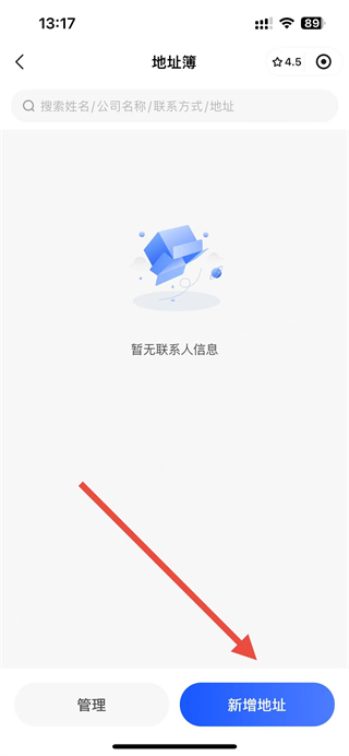 3、在地址簿頁(yè)面中,點(diǎn)擊右下角新增地址按鈕。