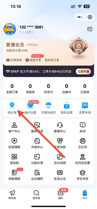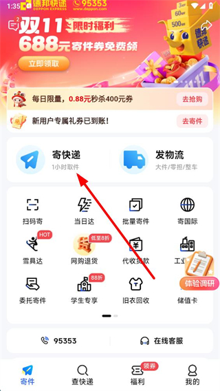 1、打開(kāi)德邦快遞APP,在寄件頁(yè)面點(diǎn)擊寄快遞選項(xiàng)。