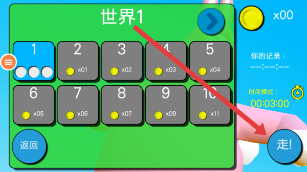 1、選好世界一關(guān)卡,進(jìn)入關(guān)卡一,點(diǎn)擊右邊超顯眼的走按鈕,開(kāi)啟新一輪的冒險(xiǎn)旅程。