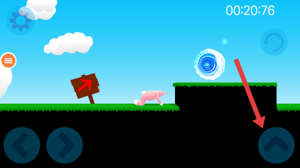3、遇到障礙不要慌張,點(diǎn)右邊的向上按鍵跳過(guò)去并且配合左邊的前進(jìn)后退按鍵,跳進(jìn)傳送門通關(guān)。