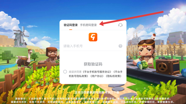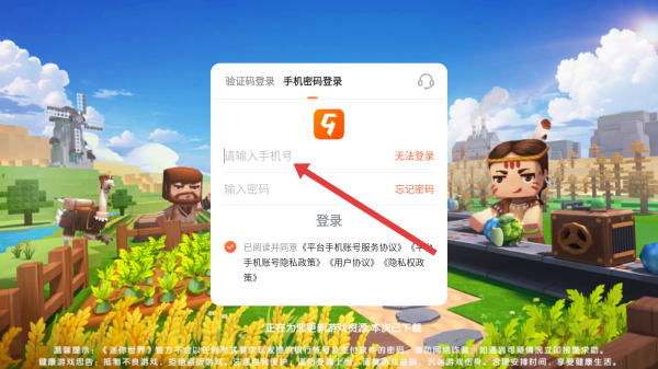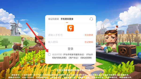 4、在勾選好同意按鈕后,點擊上方輸入框依次填寫手機(jī)號和密碼,即可完成登錄操作。
