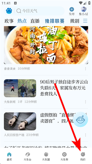 1、在大象新聞首頁,點擊我的選項,進入個人界面。