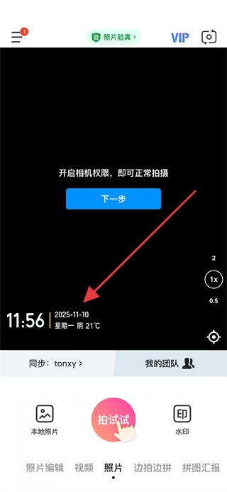 1、打開今日水印相機APP,點擊時間水印區(qū)域,展開水印設(shè)置選項。