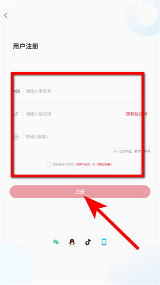 4、在用戶注冊(cè)頁(yè)面,填寫信息并勾選協(xié)議后,點(diǎn)擊注冊(cè)按鈕,即可完成賬號(hào)注冊(cè)。