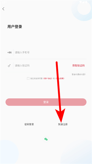 3、在用戶登錄界面,點(diǎn)擊快速注冊(cè)選項(xiàng),進(jìn)入用戶注冊(cè)頁(yè)面。