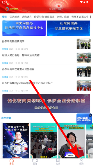 1、在鄒平融媒app首頁(yè),點(diǎn)擊右下角我的選項(xiàng),進(jìn)入個(gè)人頁(yè)面。
