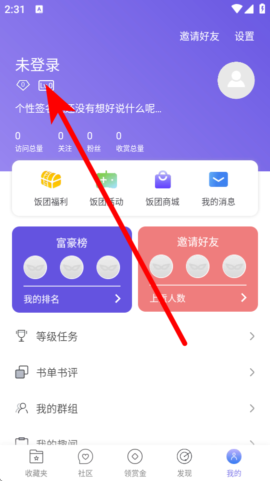 1、在飯團看書首頁,點擊右下角我的選項,進入個人頁面。