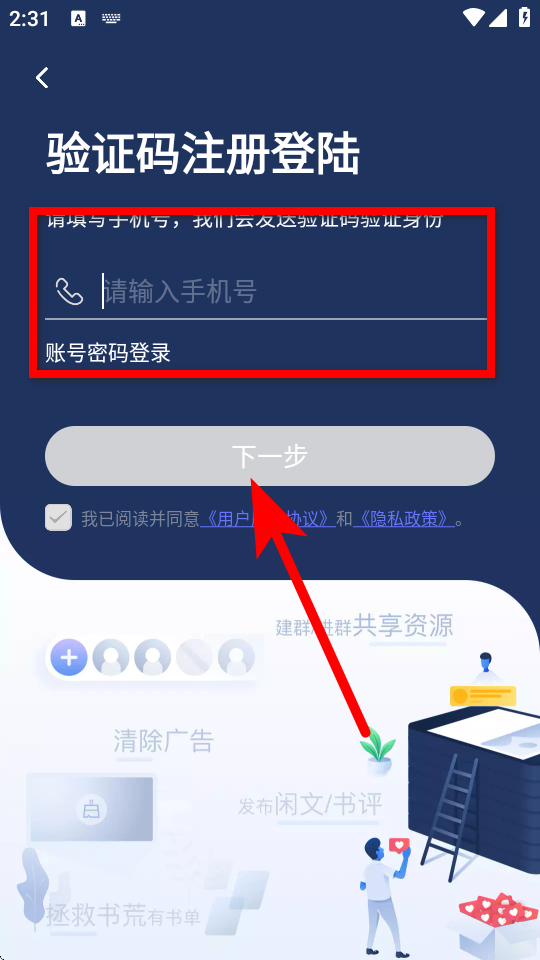 4、在注冊頁面,輸入手機號后點擊下一步,即可完成賬號注冊流程。
