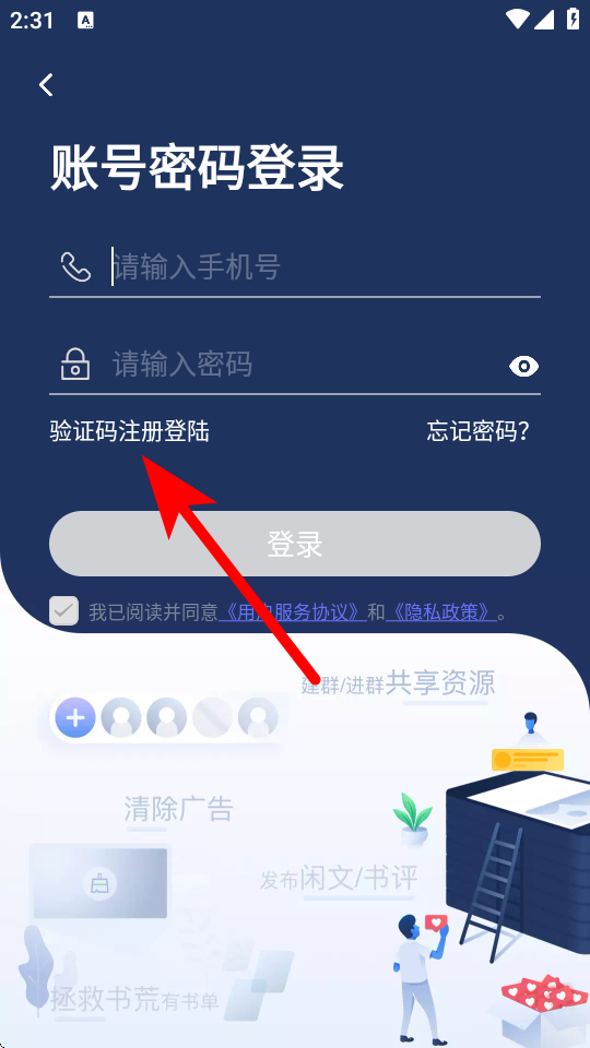 3、在登錄界面,點擊驗證碼注冊登陸選項,進入注冊頁面。