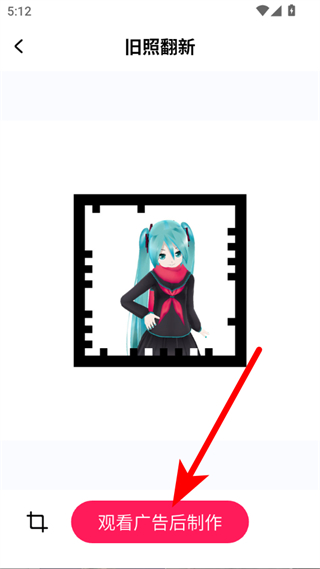 4、選取圖片后,點(diǎn)擊觀看廣告后制作,待廣告播放完畢后即可完成老照片的翻新修復(fù)。