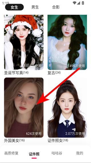 2、在證件照頁面中,選擇你想要使用的證件照模板,如外國美女16模板。