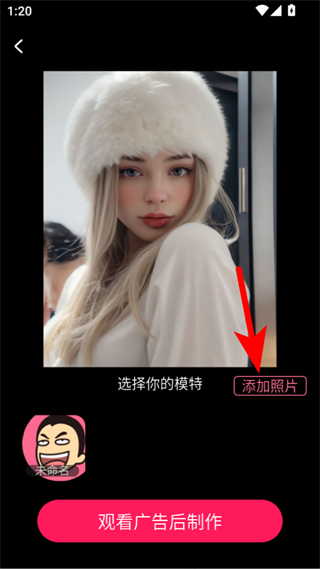 4、選擇模版后,點(diǎn)擊添加照片按鈕,添加你想要制作證件照的照片,再點(diǎn)擊觀看廣告后制作按鈕,即可生成證件照。