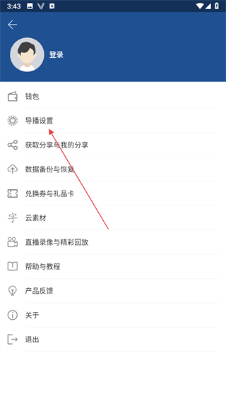 2、在設(shè)置頁面當(dāng)中,找到并點擊導(dǎo)播設(shè)置選項。