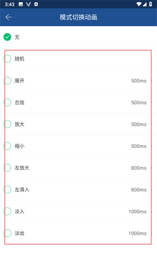4、在模式切換動畫頁面,可選擇不同的動畫模式。