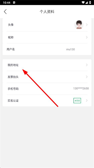 2、進(jìn)入個(gè)人資料頁(yè)面后,點(diǎn)擊我的地址選項(xiàng)。