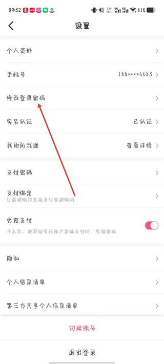 3、在設(shè)置頁面,點(diǎn)擊修改登錄密碼選項(xiàng)。