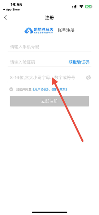 4、在頁(yè)面輸入手機(jī)號(hào)碼、驗(yàn)證碼,設(shè)置密碼并同意相關(guān)協(xié)議后,點(diǎn)擊立即注冊(cè)即可完成注冊(cè)。
