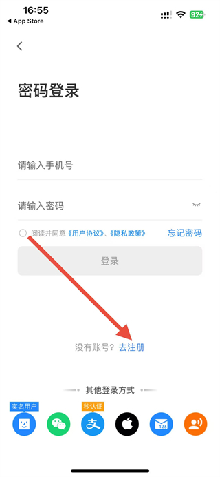 3、在登錄界面,點(diǎn)擊去注冊(cè)選項(xiàng),進(jìn)入注冊(cè)頁(yè)面。