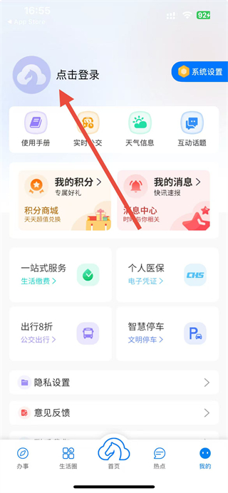 2、在個(gè)人頁(yè)面,點(diǎn)擊點(diǎn)擊登錄區(qū)域,進(jìn)入登錄界面。