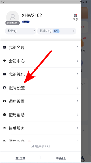2、在功能菜單中點(diǎn)擊賬號(hào)設(shè)置,進(jìn)入賬號(hào)設(shè)置頁面。