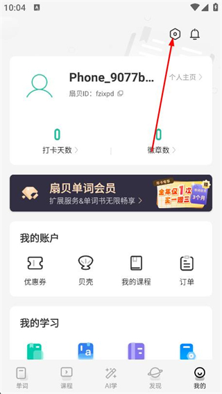 3、登陸完成后,即可成功進入扇貝單詞app主界面,代表登陸操作完成。