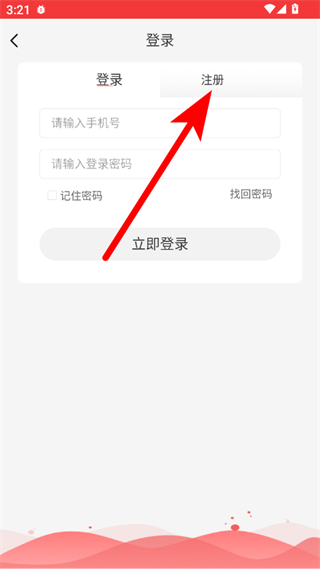 3、在登錄頁面,點(diǎn)擊注冊選項(xiàng),進(jìn)入注冊界面。