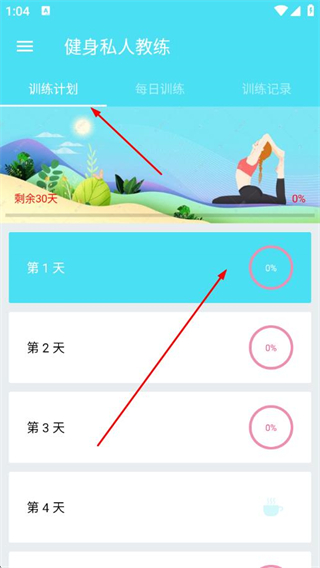 1、打開健身私人教練APP,在訓(xùn)練計(jì)劃頁面選擇要進(jìn)行的訓(xùn)練天數(shù)。