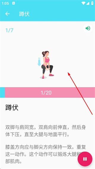 4、在蹲伏訓(xùn)練頁面,按照動(dòng)作說明完成訓(xùn)練動(dòng)作。