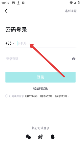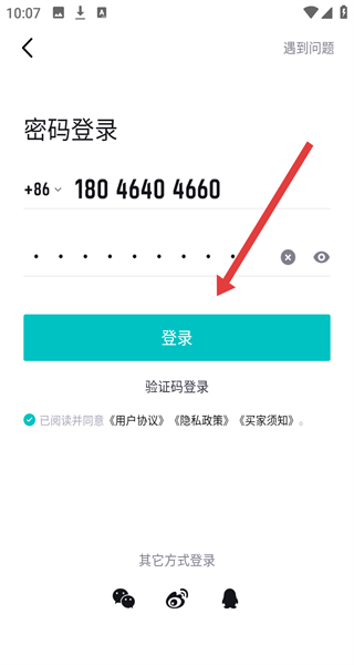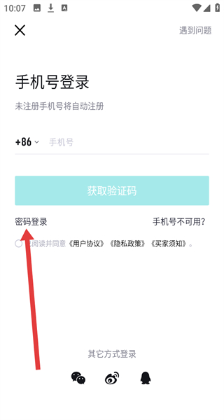 2、在進(jìn)入到手機(jī)號登錄頁面后,可以點擊下方密碼登錄按鈕,切換登錄方式。