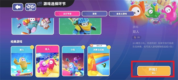 2、然后在選擇游戲界面中,選擇【雙人】模式,就可以了;