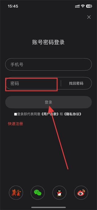 4、填寫對(duì)應(yīng)的密碼,點(diǎn)擊登錄,完成賬號(hào)登錄。