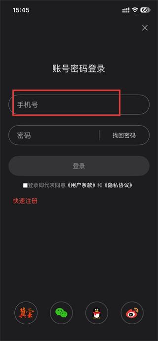 3、進(jìn)入登錄頁面,點(diǎn)擊輸入框,輸入手機(jī)號(hào)碼。