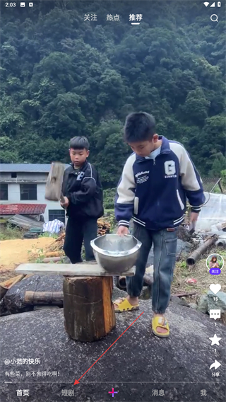 1、啟動(dòng)微視的應(yīng)用,在首頁導(dǎo)航欄中點(diǎn)擊短劇的圖標(biāo)。