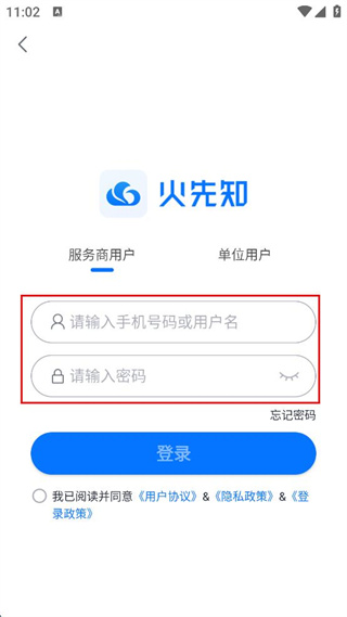 3、在登錄界面輸入手機號碼或用戶名以及密碼。