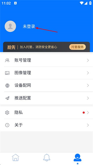 2、進入“我的”界面后點擊“未登錄”區(qū)域。