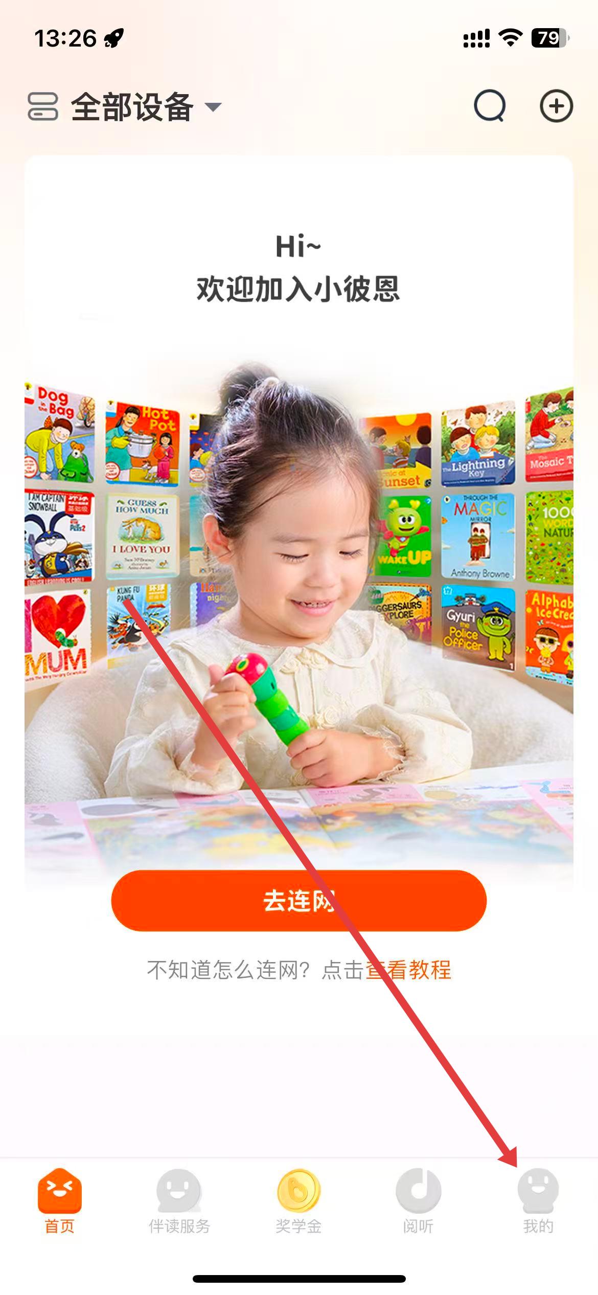 1、打開小彼恩app,點(diǎn)擊底部導(dǎo)航欄的我的選項(xiàng)。