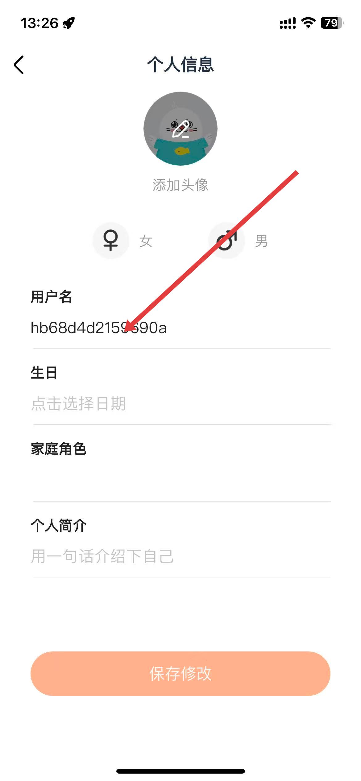 3、在個(gè)人信息頁面中,點(diǎn)擊用戶名選項(xiàng),輸入新昵稱。