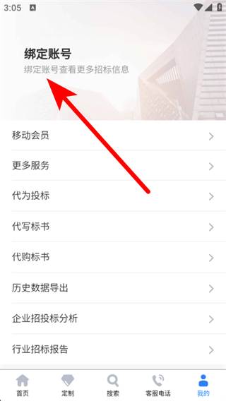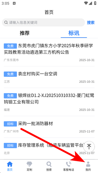 1、進(jìn)入招標(biāo)網(wǎng)首頁(yè)后,點(diǎn)擊右下角我的,進(jìn)入個(gè)人中心的頁(yè)面。