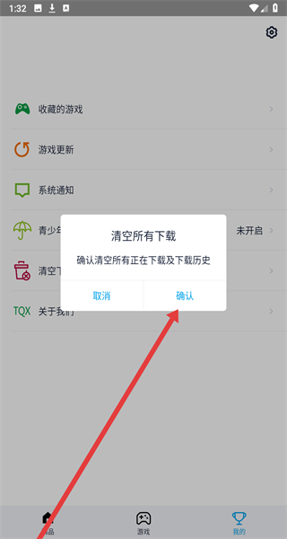 4.點擊我的,可以登陸賬號,查看自己的收藏的游戲、游戲更新、清空下載內(nèi)容等各種操作都在“我的”頁面。