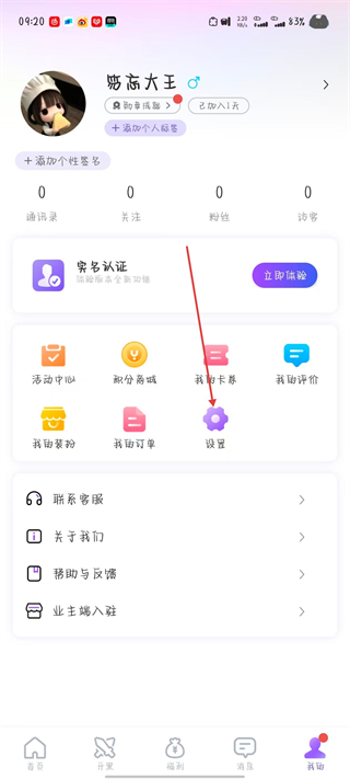 1、打開悅通行app,進入我的頁面,點擊設(shè)置選項。