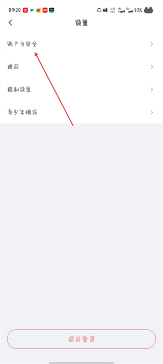 2、在設(shè)置頁面,點擊賬戶與安全選項。