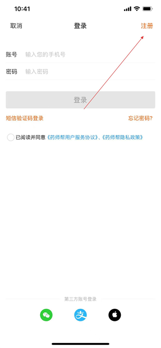 2、在登錄頁面點擊右上角注冊,進入注冊頁面。