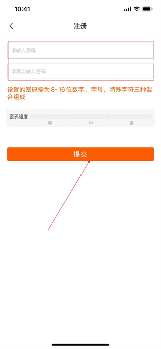 4、輸入密碼并再次確認(rèn)密碼,點擊提交,即可完成賬號注冊。