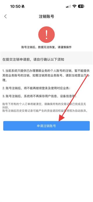 4、在注銷賬號頁面中點擊申請注銷賬號,完成魔鏡慧眼賬號的注銷操作。