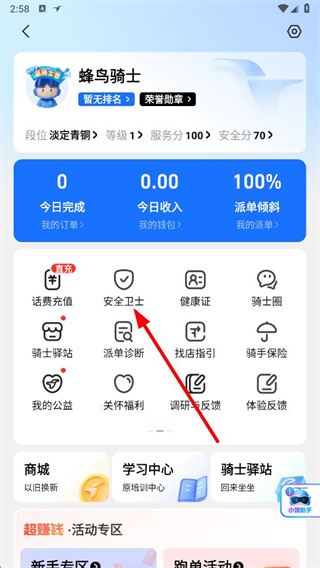 2、在個人頁面中,選項列表往左滑動后,點擊安全衛(wèi)士選項。
