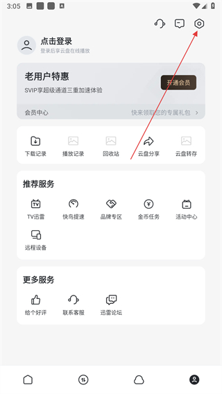 1、打開迅雷APP,點(diǎn)擊右上角的設(shè)置。