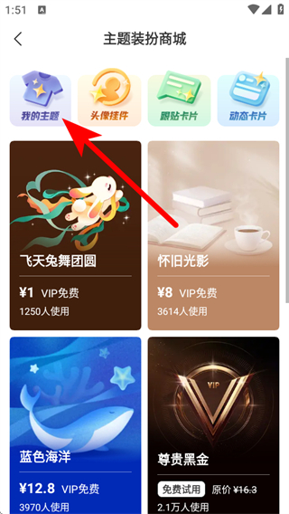3、在主題裝扮商城頁(yè)面,點(diǎn)擊我的主題,進(jìn)入我的主題頁(yè)面。